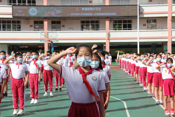 活動最后,開發(fā)區(qū)第一小學(xué)的全體學(xué)生在黃玲輔導(dǎo)員的帶領(lǐng)下進(jìn)行了莊嚴(yán)的禁毒宣誓,用堅(jiān)定的宣誓表達(dá)了珍愛生命、抵制毒品、參與禁毒的決心。本次活動不僅提高了學(xué)生識毒、防毒、拒毒的認(rèn)識,而且增強(qiáng)了青少年珍愛生命、遠(yuǎn)離毒品的自我保護(hù)意識;也使開發(fā)區(qū)第一小學(xué)的禁毒教育真正做到從學(xué)生教育入手,將禁毒宣傳教育真正落到實(shí)處!