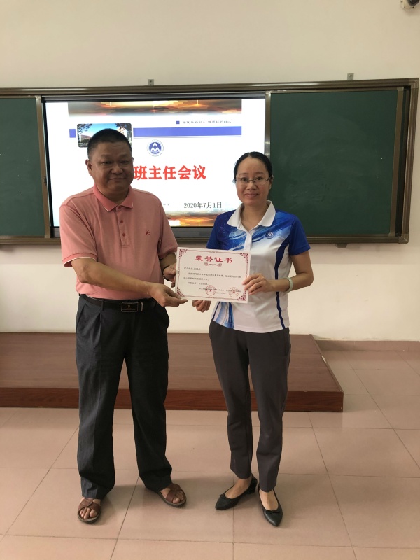 最后,吳美霞老師替張馨月同學(xué)接受胡校長(zhǎng)頒發(fā)的市自強(qiáng)好少年和自強(qiáng)少年標(biāo)兵獎(jiǎng)項(xiàng)。