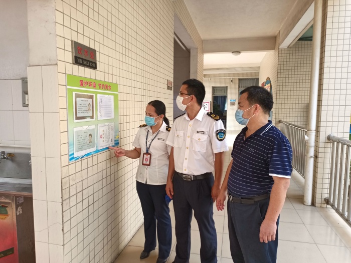 9月2日上午,民眾鎮(zhèn)衛(wèi)生監(jiān)督所來到浪網(wǎng)小學(xué)進(jìn)行開學(xué)防疫工作的驗(yàn)收檢查,浪網(wǎng)小學(xué)劉偉勝校長攜全體行政迎接本次檢查。檢查組從實(shí)地查看、查閱資料和現(xiàn)場反饋等三個環(huán)節(jié)進(jìn)行檢查。檢查組首先查看了綜合樓直飲機(jī)情況,肯定了衛(wèi)生情況和水質(zhì),并查看衛(wèi)生許可證。接著,他們查看健康觀察區(qū)和留觀室、生保健室,檢查組詢問校醫(yī)消毒方法、應(yīng)急預(yù)案等,并查看了各種制度,檢查了防疫物資齊備。最后,檢查組在教師會議室,查看了學(xué)校各項(xiàng)方案和制度,肯定了該校充分的準(zhǔn)備。