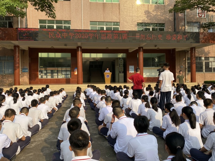 秋風(fēng)送爽、丹桂飄香。9月1日上午,民眾中學(xué)舉行開學(xué)典禮暨思政第一課,全體師生在綜合樓大堂前參加典禮。