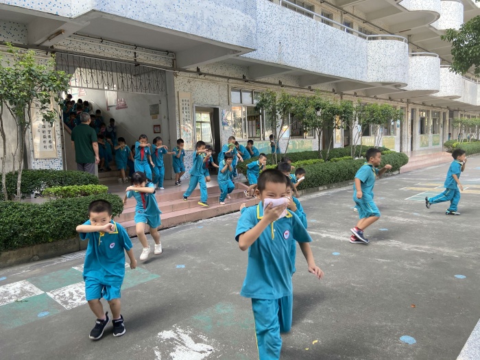 演練前,總務(wù)主任梁兆元老師對(duì)演練進(jìn)行了精心的組織和周密的安排,詳細(xì)規(guī)劃了每個(gè)班級(jí)的集合區(qū)域以及樓層、走廊的看守老師。此外,梁主任還對(duì)全校師生進(jìn)行了詳細(xì)的消防安全基礎(chǔ)知識(shí)講解培訓(xùn)。下午3點(diǎn)45分,隨著消防警報(bào)的響起,還在教室上課的同學(xué)們?cè)诶蠋煹闹笇?dǎo)下,按照應(yīng)急預(yù)案,紛紛用手帕捂住嘴,彎著腰,沿著學(xué)校指定樓梯通道快速、有序地撤離到學(xué)校運(yùn)動(dòng)場(chǎng)的安全地帶。整個(gè)過程僅用了短短幾分鐘,做到了安全、快速、有序。接下來,開發(fā)區(qū)消防大隊(duì)的顧警官,結(jié)合了今天演練的情況,就如何報(bào)火警、火災(zāi)的預(yù)防、火場(chǎng)自救及逃生方法、滅火器的使用等消防安全知識(shí)進(jìn)行了講解;最后,民眾鎮(zhèn)消防中隊(duì)隊(duì)員現(xiàn)場(chǎng)指導(dǎo)師生們學(xué)習(xí)使用滅火器進(jìn)行滅火。