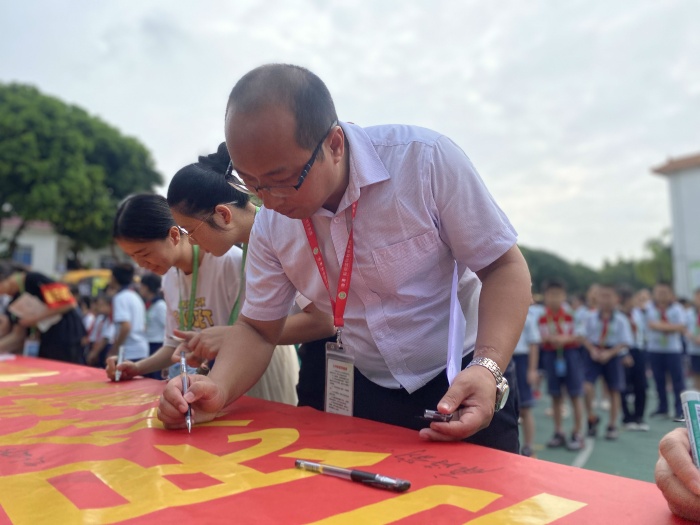 啟動儀式的高潮在朗誦國學(xué)經(jīng)典。政教處陳七靈干事帶領(lǐng)同學(xué)們朗誦國學(xué)經(jīng)典,各個年級的同學(xué)熱情高漲,聲音嘹亮。朗誦結(jié)束后,各班主任老師帶領(lǐng)5位同學(xué)進行簽名留念。