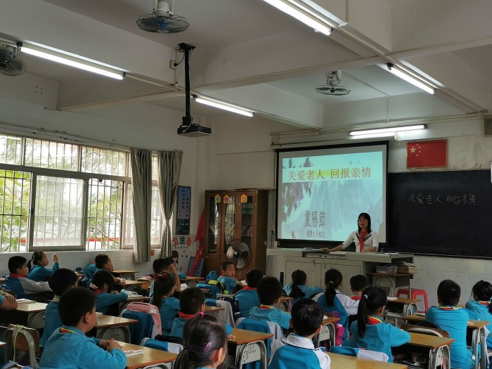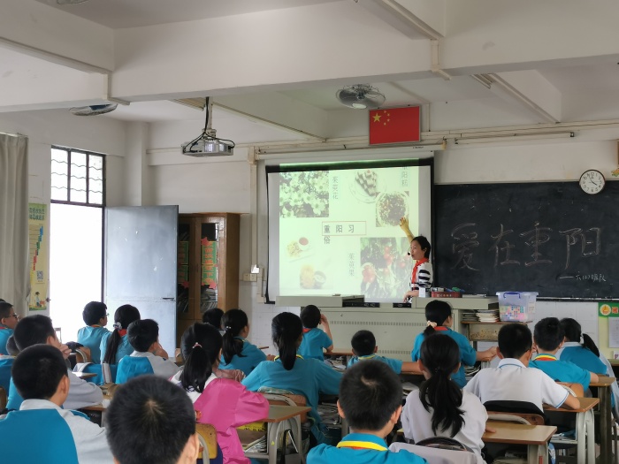 接著,下午第三節(jié)班會(huì)課各班開(kāi)展“關(guān)愛(ài)老人,回報(bào)親情”的主題班會(huì)。班會(huì)上學(xué)生們重溫了王維的詩(shī)《九月九日憶山東兄弟》,然后了解重陽(yáng)節(jié)的神話(huà)傳說(shuō),接著由班主任介紹了重陽(yáng)節(jié)的習(xí)俗。