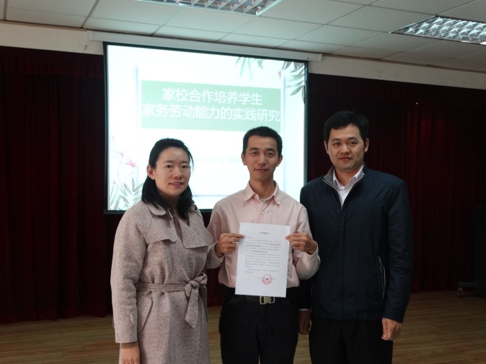 課題開題報(bào)告開始,首先鐘偉云老師為兩位課題主持人頒發(fā)立項(xiàng)通知書,接下來(lái)音樂課題主持人向英老師、德育課題主持人陳曉雄主任分別做開題報(bào)告。他們分別從課題研究的背景、課題界定,研究目的、研究?jī)?nèi)容、研究過程、研究預(yù)期成果等進(jìn)行匯報(bào)。匯報(bào)結(jié)束后,到場(chǎng)的專家針對(duì)課題研究的思路、方法等提出建議,為課題的順利開展理清思路。