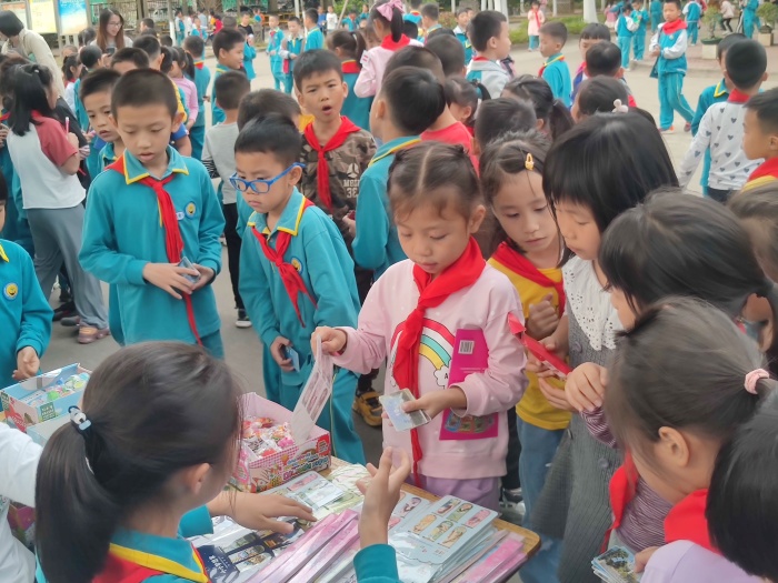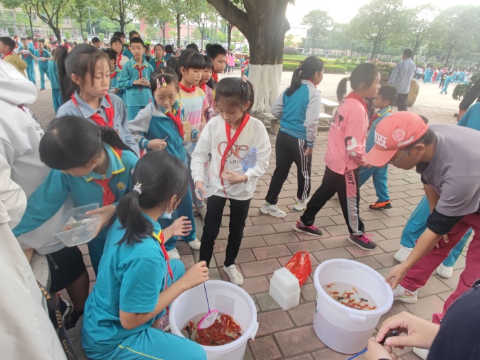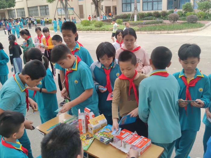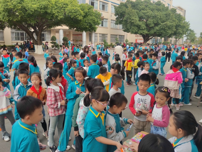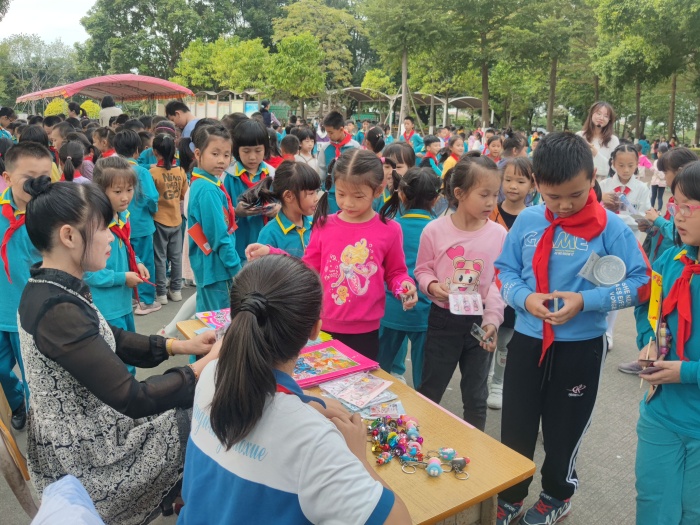 學(xué)生排著整齊的隊(duì)伍來(lái)到兌換場(chǎng)地,低年級(jí)在升旗臺(tái)前,中年級(jí)在教學(xué)樓前后座中間的空地上,高年級(jí)在綜合樓前。整個(gè)兌換過(guò)程緊張、有序,師生們都積極參與此活動(dòng)。在兌換現(xiàn)場(chǎng),孩子們拿著通過(guò)自己努力獲得的積分卡,在各個(gè)兌換區(qū)兌換到了心愛(ài)的小禮物,學(xué)生的臉上洋溢著開(kāi)心的笑容。其中兌換烏龜、金魚的攤位深受學(xué)生歡迎,排起長(zhǎng)龍。