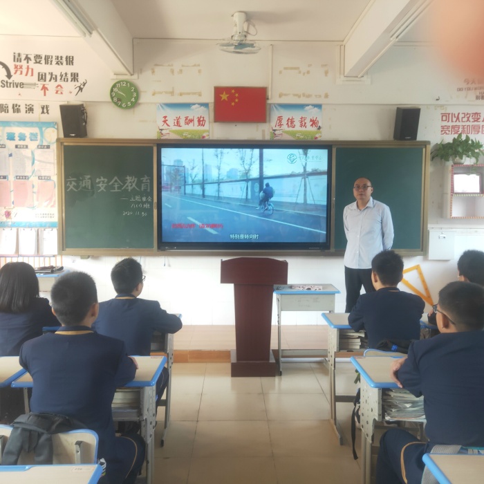 在學(xué)校安全處的統(tǒng)一組織下,各班開展了以“交通安全”為主題的班會活動。課上,小學(xué)各年級學(xué)生通過觀看通俗易懂,具有趣味性的圖文、動畫視頻教育資源,讓學(xué)生在輕松活躍的氛圍中學(xué)習相關(guān)的交通安全知識;中學(xué)各班則通過觀看一些交通教育短片和監(jiān)控錄像,了解平時生活中真實發(fā)生的交通事故,并掌握了一些遇險自救知識,提高了學(xué)生對發(fā)生交通意外時的自救能力?;顒幼詈?,各班班主任對交通安全知識進行了強調(diào)、補充和總結(jié),學(xué)生們掌握了怎樣安全行走、騎車和乘車的知識。