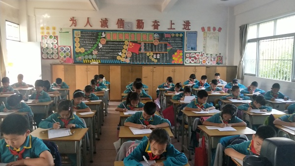 本次比賽要求三至六年級(jí)以班為單位,全體學(xué)生參與,統(tǒng)一使用黑色水筆即席書寫,30分鐘完成。三、四年級(jí)的書寫內(nèi)容以課本單詞和句子為主,五、六年級(jí)以課本句子和短文為主。