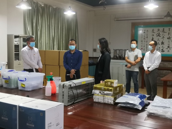 黃鎮(zhèn)長(zhǎng)先來到學(xué)校物資儲(chǔ)備室,詳細(xì)詢問每一項(xiàng)物資儲(chǔ)備了多少、還缺多少,他說:學(xué)生返校復(fù)學(xué)是眼下最重要的工作,是老百姓最關(guān)心、黨委政府最核心的工作。學(xué)校有什么困難、有什么需要,盡管提出來,鎮(zhèn)里面一定會(huì)想辦法幫大家解決。政府的各個(gè)部門,也會(huì)全力支持。他看到學(xué)校里存放著九個(gè)大箱、近2萬個(gè)口罩,就翻開來查看口罩的合格證,并向民眾鎮(zhèn)衛(wèi)生服務(wù)中心的同志了解這些口罩是否合格,總共可以供師生使用多少天。他要求學(xué)校要未雨綢繆,把工作做在前面,適當(dāng)多儲(chǔ)備一些防疫物資,做到手中有糧、心中不慌。