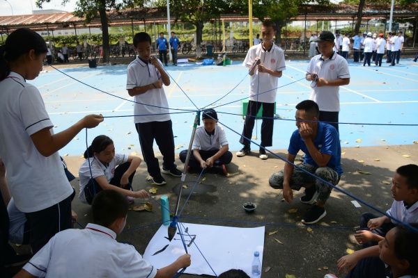 在拓展活動(dòng)過程中,學(xué)生們進(jìn)行了“團(tuán)隊(duì)融冰”、“挑戰(zhàn)NO、1”、“妙筆生花”、“鼓舞飛揚(yáng)”和“動(dòng)力繩圈”等項(xiàng)目。這些項(xiàng)目活動(dòng),不僅要求同學(xué)們要有堅(jiān)強(qiáng)的意志和不怕苦,不怕累的精神,還要求他們要懂得配合,能夠團(tuán)結(jié)協(xié)助。同學(xué)們在活動(dòng)過程中,就算體力透支,仍然堅(jiān)持不放棄,總結(jié)經(jīng)驗(yàn),最終勝利完成所有項(xiàng)目,真正體驗(yàn)到了堅(jiān)持和團(tuán)結(jié)的快樂。同學(xué)們以智慧的頭腦和高度的團(tuán)結(jié)協(xié)作精神,圓滿地完成了一個(gè)個(gè)挑戰(zhàn)的項(xiàng)目。