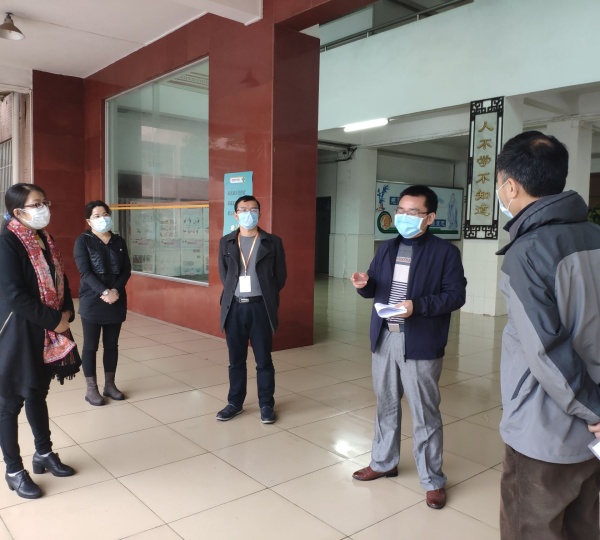 2020年2月14日下午,市教體局郭勇科長一行到民眾中學(xué)指導(dǎo)疫情防控工作。民眾中學(xué)校長胡留全、副校長何春華、總務(wù)主任李咸啟、總務(wù)副主任梁玉嬋熱情接待郭科長一行并配合防疫指導(dǎo)工作。