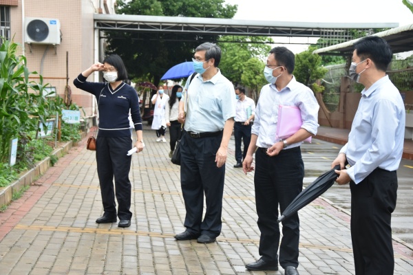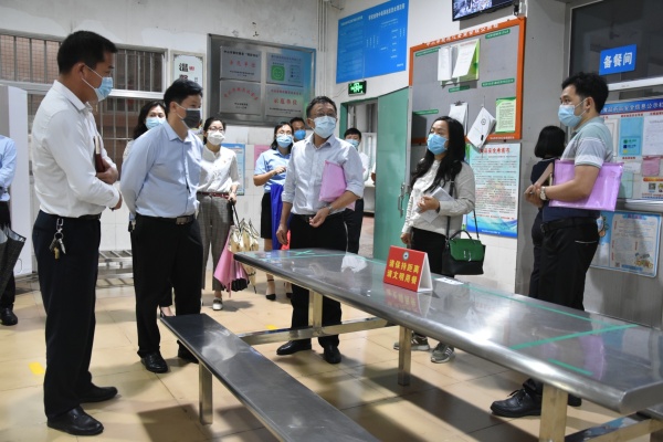 2020年4月22日下午,在中山市教育工委副書(shū)記廖誠(chéng)帶領(lǐng)下,中山市春季學(xué)期開(kāi)學(xué)條件核驗(yàn)組一行四人來(lái)到錦標(biāo)學(xué)校進(jìn)行開(kāi)學(xué)復(fù)核驗(yàn)收。核驗(yàn)組由市教體局、市疾控中心、市市場(chǎng)監(jiān)管局等相關(guān)領(lǐng)導(dǎo)組成。民眾鎮(zhèn)黨委劉釗妍委員、教育事務(wù)指導(dǎo)中心黃海文主任等陪同檢查。錦標(biāo)學(xué)校黃元感校長(zhǎng)帶領(lǐng)學(xué)校全體行政及相關(guān)人員迎接檢查。