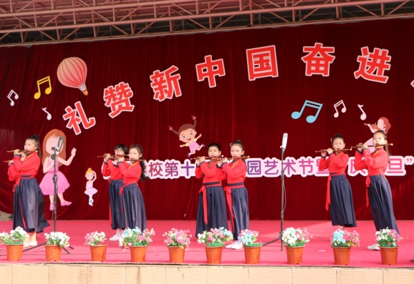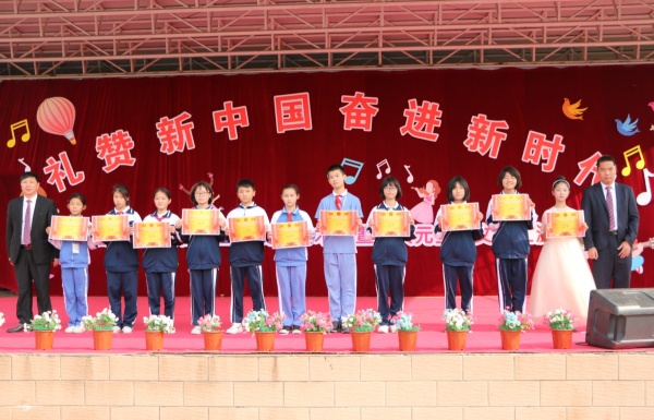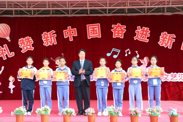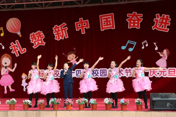 為了表彰在本次藝術(shù)節(jié)中取得優(yōu)異成績(jī)的優(yōu)秀個(gè)人并充分展示學(xué)校的藝術(shù)教育成果,錦標(biāo)學(xué)校以“慶元旦,迎新年”為活動(dòng)契機(jī),舉行了以“禮贊新中國,奮進(jìn)新時(shí)代”為主題的師生文藝節(jié)目展演。在文藝節(jié)目展演前,學(xué)校黃元感校長(zhǎng)向全校師生及家長(zhǎng)們致以了新年的祝福,希望大家在新的一年里收獲新的夢(mèng)想。黃校長(zhǎng)致辭結(jié)束后,學(xué)校全體行政為在第十四屆校園藝術(shù)節(jié)系列活動(dòng)中獲獎(jiǎng)的學(xué)生代表進(jìn)行了表彰頒獎(jiǎng)。隨著6位小主持人共同宣布:“錦標(biāo)學(xué)校慶元旦文藝匯演現(xiàn)在開始”后,由小學(xué)低年級(jí)組學(xué)生表演的鼓舞《中國范》正式拉開了本次文藝展演的序幕,由師生們共同演藝的10個(gè)精品節(jié)目輪番上陣,內(nèi)容豐富、精彩紛呈,看得臺(tái)下所有學(xué)生及家長(zhǎng)們掌聲陣陣。
