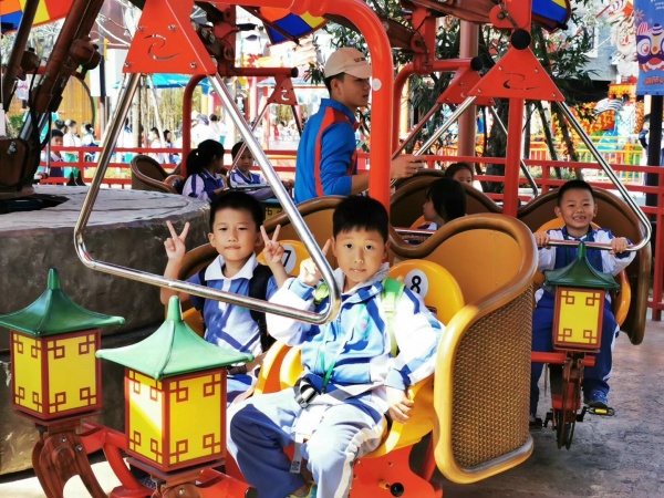 據(jù)了解,廣州“融創(chuàng)樂園”于2019年6月15日正式開園,集合雪世界、水世界、融創(chuàng)樂園、體育世界等主題樂園。早上8:00,師生們坐上旅游大巴車前往目的地,一進(jìn)入景色優(yōu)美的長(zhǎng)鹿景區(qū),錦標(biāo)學(xué)子們立刻就被樂園優(yōu)美的自然環(huán)境、眾多有趣的游樂項(xiàng)目深深吸引了。于是,大家按活動(dòng)計(jì)劃安排,文明有序地依次進(jìn)入不同的游樂區(qū)進(jìn)行研學(xué)活動(dòng)。海盜船、激流勇進(jìn)、摩天輪、過山車等數(shù)十個(gè)游樂項(xiàng)目讓孩子們興奮不已,他們沉浸在歡快的娛樂活動(dòng)之中,盡情體驗(yàn)著豐富有趣的游樂活動(dòng)帶來的快樂,感受著小組合作游戲的快樂。老師們則與導(dǎo)游、園區(qū)工作人員一起關(guān)注著孩子們的表現(xiàn),根據(jù)實(shí)際情況靈活展開課外教育工作,并時(shí)刻關(guān)注大家的安全。