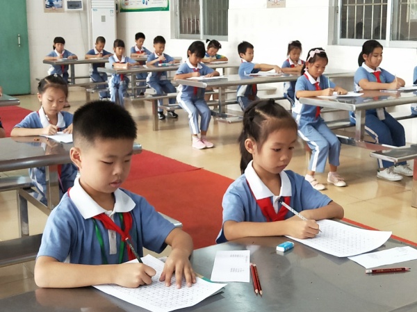 據(jù)了解,在教務(wù)處蔣業(yè)轉(zhuǎn)主任的精心組織下,全校小學(xué)部學(xué)生對此次比賽表現(xiàn)出極大的熱情。在班級初賽的基礎(chǔ)上每班選派3位選手參加,共有132名小學(xué)生參賽。比賽以教材、古文詩詞等內(nèi)容為書寫主題。一、二年級用鉛筆,三至六年級用鋼筆。比賽現(xiàn)場,參賽者們個個滿懷激情,用心書寫每一個筆畫、每一個漢字。同學(xué)們握筆正確,坐姿端正,表現(xiàn)出良好的書寫習慣,所寫作品筆畫流暢,橫平豎直,結(jié)構(gòu)勻稱,整體美觀,在短短的二十分鐘內(nèi)現(xiàn)場完成自己的作品。評委老師們從寫字姿勢、書寫筆畫筆順和卷面三方面情況綜合評估學(xué)生的寫字水平。在公平、公正的評分之后,各學(xué)段分別評出了一、二、三等獎,并挑選出優(yōu)秀作品在校園內(nèi)進行展覽。