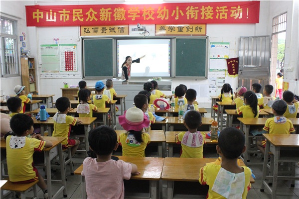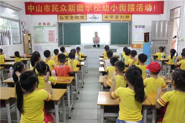 2019年6月11日上午,中山市民眾新徽學校迎來了一群特別的小客人,他們是沙仔幼兒園大班的小朋友。在老師的陪同下,伴隨著學校鼓號隊的歡迎曲,小朋友們第一次踏入小學的校門,新徽學校全體行管及學校師生熱情的接待了這群活潑可愛的小客人。