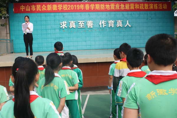 為了使學(xué)生了解地震發(fā)生時的應(yīng)急避震知識,掌握應(yīng)對地震發(fā)生時采取的防護措施和方法,最大限度地降低地震帶來的損失,從而提高學(xué)生緊急避險、自救自護和應(yīng)變的能力,中山市民眾新徽學(xué)校于2019年5月13日上午組織全校師生進行了2019年春學(xué)期防地震應(yīng)急避震疏散演練活動。