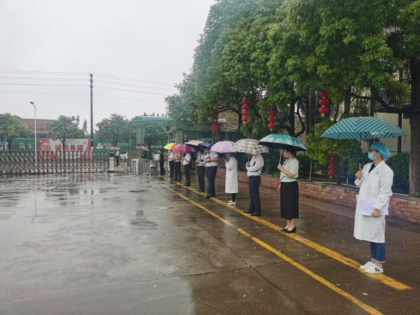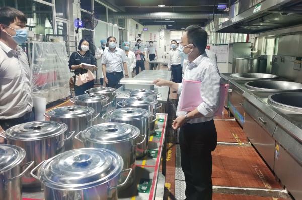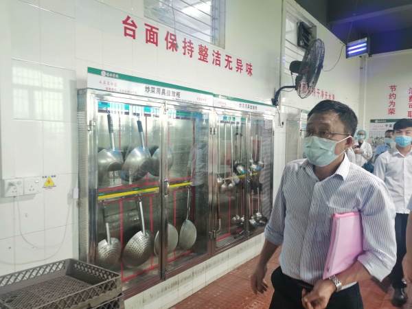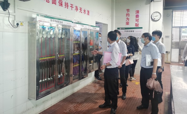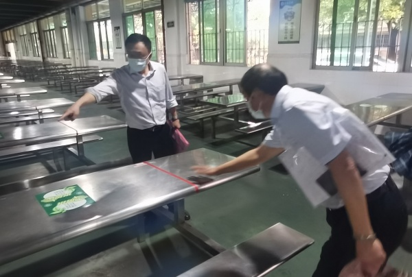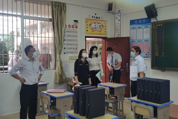 當(dāng)天,德恒校園里流連春光,舍不得凋零的幾支紫荊花被南國的驟雨擊落一地,落英繽紛,美麗極了。下午2:00,德恒學(xué)校全體行政滿懷信心在校門口列隊(duì)迎接市高三、初三復(fù)學(xué)防控工作專班的到來。2:30左右,市教育工委廖誠副書記帶領(lǐng)的驗(yàn)收專班,在民眾鎮(zhèn)黨委劉釗妍委員和民眾鎮(zhèn)教指中心黃海文主任的引領(lǐng)下,來到德恒學(xué)校。一行人在學(xué)校門口測完體溫和進(jìn)行必要消毒后,隨即開始了對德恒學(xué)校高三、初三復(fù)學(xué)防控準(zhǔn)備工作的實(shí)地查驗(yàn)。驗(yàn)收專班一行人首先來到學(xué)校健康觀察室,查看了觀察室的防疫物質(zhì)配備,檢查了消毒通風(fēng)情況。接著來到學(xué)生宿舍,看到德恒學(xué)校學(xué)生宿舍干凈整潔,通風(fēng)良好,了解了學(xué)校初三、高三學(xué)生全部寄宿,每間宿舍只安排三名學(xué)生等情況。隨后查看了食堂操作間和學(xué)生餐廳,他們不僅對食堂的整潔規(guī)范給予了高度評價,還特別對學(xué)校安排班主任和行政陪同就餐管理學(xué)生的這個細(xì)節(jié)提出了贊賞。再接著一行人查看了學(xué)校保健室、防疫物資儲備室、教室。最后,就地在備用教室召開了反饋會。在會議中,廖書記說,他幾年前來過此地,但當(dāng)時還不叫德恒學(xué)校,今天再到這里,他對德恒兆業(yè)教育集團(tuán)接收這所學(xué)校后帶來的巨大變化感到驚喜和意外。他同時強(qiáng)調(diào),德恒學(xué)校這次高三、初三復(fù)學(xué)防控準(zhǔn)備工作完成得非常好,要學(xué)校及時總結(jié)做法和經(jīng)驗(yàn),并將其推廣到后續(xù)其他年級的復(fù)學(xué)防控準(zhǔn)備工作中,甚至要在民眾鎮(zhèn)乃至中山市加以推廣,并最后激勵德恒全體行政要再接再厲。