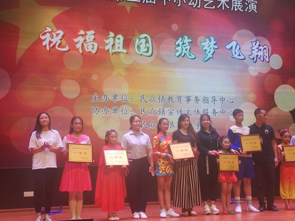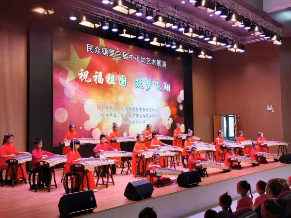 為慶祝新中國(guó)成立70周年,弘揚(yáng)愛(ài)國(guó)主義精神,全面實(shí)施素質(zhì)教育,充分展現(xiàn)民眾鎮(zhèn)中小幼藝術(shù)活動(dòng)成果,民眾鎮(zhèn)教育事務(wù)指導(dǎo)中心于10月28日14:30在浪網(wǎng)小學(xué)舉辦了主題為“祝福祖國(guó),筑夢(mèng)飛翔”的第三屆中小幼藝術(shù)展演。全鎮(zhèn)9所中小學(xué)和4所幼兒園參加了本次活動(dòng)。德恒學(xué)校精心準(zhǔn)備,選送了最具學(xué)校特色的古箏演奏《愛(ài)我中華》參與本次展演。德恒學(xué)校的古箏演奏作為本次展演的開(kāi)場(chǎng)節(jié)目,一經(jīng)亮相,立即引爆全場(chǎng)。學(xué)生高超嫻熟的演奏技巧,令在場(chǎng)觀眾無(wú)不瞠目;悠揚(yáng)婉轉(zhuǎn)的曲調(diào)似一陣春風(fēng),無(wú)不令人陶醉。最后憑借孩子們的精彩表現(xiàn),德恒學(xué)校再一次奪得民眾鎮(zhèn)藝術(shù)展演的一等獎(jiǎng)。