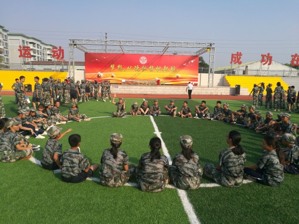 軍訓(xùn)時(shí)間為期五天,初一學(xué)生在這五天的時(shí)間里跟隨教官進(jìn)行嚴(yán)格的訓(xùn)練,對著驕陽,迎著秋風(fēng),揮灑汗水?!傲⒄⑸韵?、向前看齊、向左看齊、向后轉(zhuǎn)、蹲下、跨立、敬禮......”伴隨教官洪亮的指揮聲,配上標(biāo)準(zhǔn)的示范動(dòng)作,孩子們高度集中精神,嚴(yán)陣以待,把每一個(gè)動(dòng)作練習(xí)到近乎完美的地步。“我和我的祖國,一刻也不能分割......”訓(xùn)練之余,孩子們、老師、教官坐在樹蔭之下,唱起了《我和我的祖國》,共同慶祝新中國七十華誕。夜幕降臨,孩子們吃了晚飯,拿起被子,陸續(xù)來到足球場,教官手把手教孩子們疊軍被,從生活小事做起,養(yǎng)成好的生活習(xí)慣,嚴(yán)格規(guī)范一言一行,爭做最美德恒人。