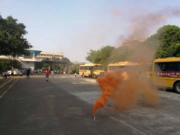“車(chē)輛起火,立即疏散!”一陣急促的廣播突然劃破了校園的寧?kù)o。轉(zhuǎn)眼間,只見(jiàn)校車(chē)兩旁濃煙四起,車(chē)內(nèi)的同學(xué)迅速解開(kāi)安全帶,彎著腰,并用毛巾等織物輕捂著口鼻,在校車(chē)?yán)蠋煹闹笓]下,緊急有序地撤離到安全區(qū)域……