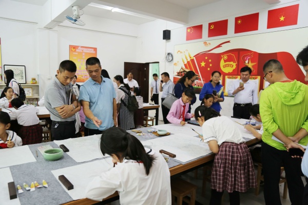 學校行政團隊的帶領下首先參觀了校園、餐廳、宿舍。美麗的校園,整潔的宿舍內(nèi)務讓大家眼前一亮。隨后一同觀摩了學生的陽光大課間活動,大家對德恒學校豐富多彩而井然有序的課間活動給予了充分的肯定。接著大家分組進班觀摩了各學科的展示課,并深入到各個功能室了解手工、國畫、兒童舞蹈、合唱、古箏等第二課堂的開展情況。隨后,與會人員又翻閱了德恒學校各年級、各學科的教案、學生作業(yè)等,更進一步了解了德恒教學常規(guī)管理的細致和認真?! ?/p>