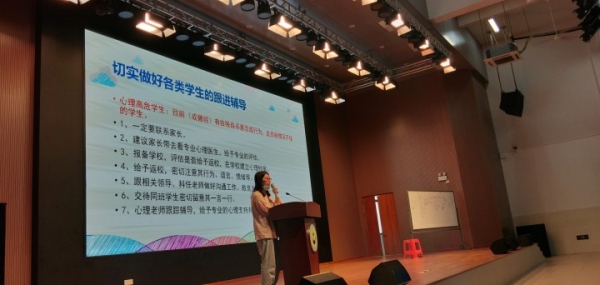 此次培訓(xùn)活動(dòng)由德育處謝錦霞主任主持,心理老師林建樹主任作題為“關(guān)注學(xué)生,用愛守護(hù)”的主題講座。林主任先從學(xué)生返校復(fù)學(xué)可能面臨的問題講起,各位班主任要切實(shí)做好各類學(xué)生的跟進(jìn)輔導(dǎo),重點(diǎn)關(guān)注心理高危學(xué)生、高風(fēng)險(xiǎn)學(xué)生,并準(zhǔn)備好對(duì)策,及時(shí)覺察和關(guān)注,給予疏導(dǎo),根據(jù)學(xué)生的實(shí)際情況調(diào)整教學(xué);對(duì)一般關(guān)注的學(xué)生,班主任、科任、本班學(xué)生是主力幫助,心理老師協(xié)助輔導(dǎo)。各班主任還要聚焦問題,精準(zhǔn)排雷,做到統(tǒng)籌推進(jìn),分類指導(dǎo)。林主任給了以下預(yù)防策略和建議:面對(duì)整體要開展返校復(fù)學(xué)學(xué)習(xí)目標(biāo)制定、時(shí)間管理、手機(jī)管理主題班會(huì)課;面對(duì)個(gè)體要分類談心與輔導(dǎo);面對(duì)學(xué)生面臨的同伴交往問題要營造溫馨和諧的班級(jí)氛圍,建立聯(lián)接、同伴互助、構(gòu)建希望、共同成長;面對(duì)師生交往問題要理解包容和關(guān)愛自己的同時(shí),理解包容和關(guān)愛學(xué)生等。最后,林老師還提出了有效溝通三部曲的策略,建議師生擺出事實(shí)、說出感受、提出希望,要有感恩教育的指導(dǎo)?;顒?dòng)最后環(huán)節(jié)還在主持人的指引下開展現(xiàn)場答疑,林主任就學(xué)生心理健康問題為現(xiàn)場的班主任解答。