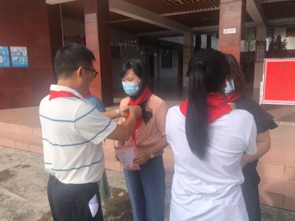 儀式上,學(xué)校少工委辦公室陳主任宣布了新生入隊(duì)名單,由六年級(jí)的大哥哥大姐姐為他們戴上了鮮艷的紅領(lǐng)巾,當(dāng)一條條鮮艷的紅領(lǐng)巾在新隊(duì)員胸前飄起時(shí),新隊(duì)員的臉上都洋溢著激動(dòng)與自豪。總輔導(dǎo)員李老師帶領(lǐng)全體隊(duì)員在隊(duì)旗下莊嚴(yán)宣誓,表示新隊(duì)員決心聽(tīng)從黨的教導(dǎo),努力成為共產(chǎn)主義事業(yè)的接班人。學(xué)校少工委主任陸校長(zhǎng)為一年級(jí)全體輔導(dǎo)員授中隊(duì)旗。這不僅僅是旗幟的傳遞,更是一份責(zé)任的委托,也傳遞了黨和學(xué)校對(duì)少先隊(duì)員的殷切關(guān)懷和希望。