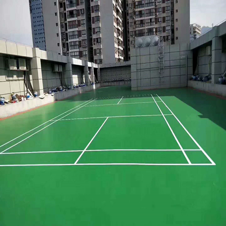 5、紋理層:用丙烯酸調(diào)速料摻入丙烯酸色料后加水全場(chǎng)涂刮二層丙烯酸調(diào)速料是一種含石英砂的丙烯酸乳液的混合物。使紋理表面濃厚并且耐久,提高調(diào)節(jié)球速及耐磨的功能。每層干透及養(yǎng)護(hù)需24小時(shí)。