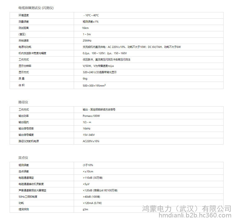 二、產(chǎn)品特征 1、電纜故障測(cè)試儀(閃測(cè)儀) (1)使用范圍廣:用于測(cè)量各種不同截面、不同介質(zhì)的各種電力電纜、高頻同軸電纜,市話電纜及兩根以上均勻鋪設(shè)的地埋電線等電纜高低阻、短路、開路、斷線以及高阻泄漏和高阻閃絡(luò)性故障。亦可用于測(cè)量電纜長(zhǎng)度以及測(cè)量電波在電纜中的傳播速度。 (2)攜帶方便:主機(jī)采用鋰電池供電、輕巧、便于攜帶、方便野外測(cè)試和礦井電纜測(cè)試。 (3)人機(jī)界面友好:采用了大屏幕 320×240 點(diǎn)陣漢字圖形界面,高亮度圖形清晰美觀,操作簡(jiǎn)單,抗干擾性強(qiáng)。 (4)安全可靠:采用新型電流取樣器,一種全新的取樣方法,具有接線簡(jiǎn)單,波形直觀容易分析,與高壓完全隔離,對(duì)主機(jī)、操作人員安全的特點(diǎn)。 (5)高品質(zhì):關(guān)鍵部件全部采用進(jìn)口元件,保證測(cè)試結(jié)果準(zhǔn)確度。 (6)外觀精美:采用堅(jiān)固且耐磨性強(qiáng)的材料,使儀器的整體質(zhì)感和使用壽命更長(zhǎng)。 2、路徑儀 (1)靜態(tài)漂移低:核心元器件采用進(jìn)口元件,性能可靠。 (2)輸出功率大:內(nèi)部采用精密大功率管,保證輸出信號(hào)功率夠大,不易衰減。 (3)保護(hù)功能完善:儀器內(nèi)部保護(hù)電路齊全,具有過壓、過流等保護(hù)功能。