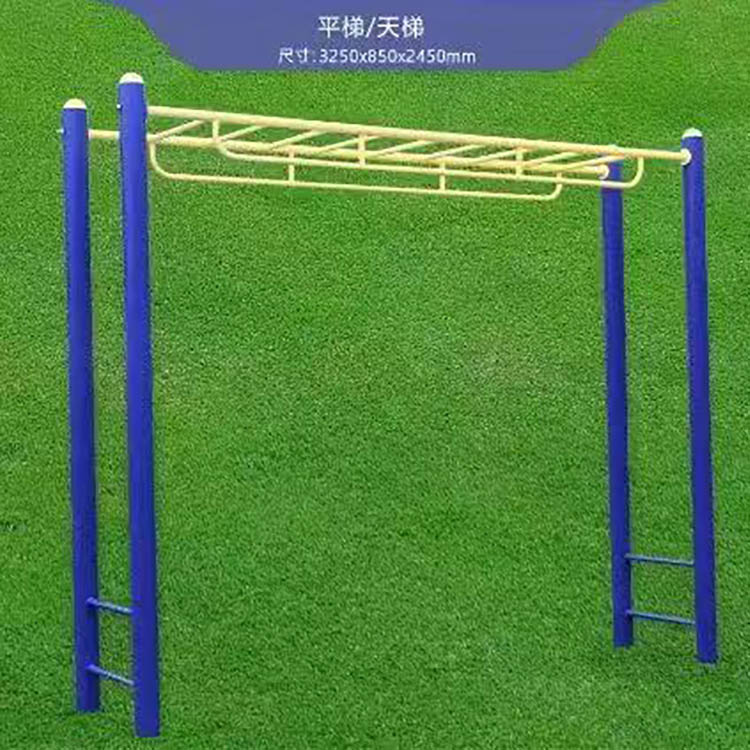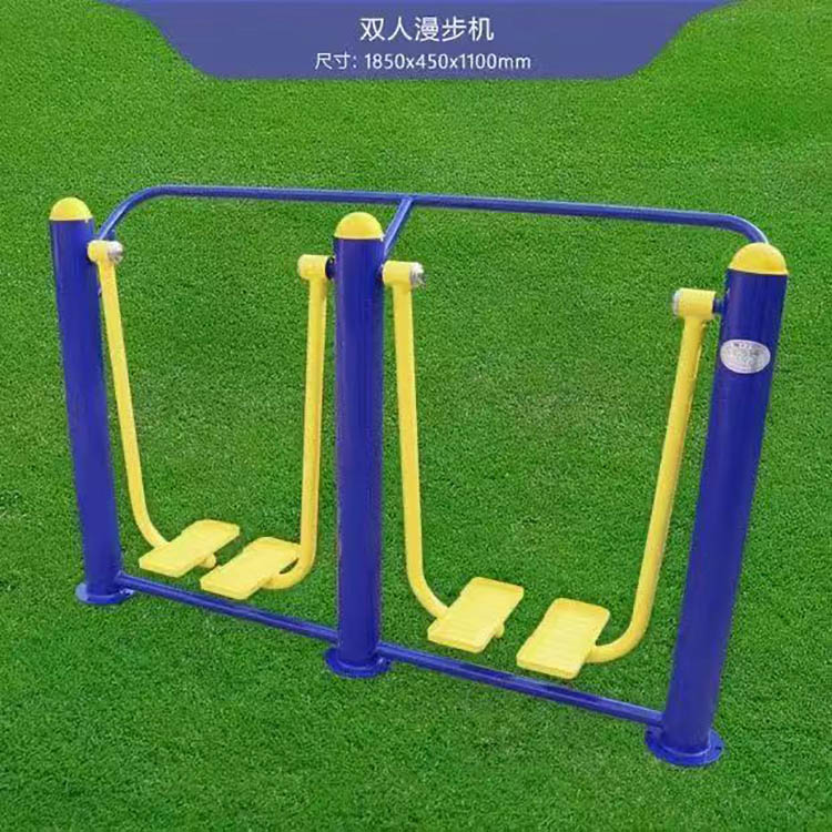 漫步機、雙人漫步機、告示牌、橢圓機、跑步機、雙人坐凳、三人轉(zhuǎn)腰器、二人轉(zhuǎn)腰器、雙外浪板、平步機、推揉器、雙人大轉(zhuǎn)輪、腰背按摩器、雙人坐拉、雙人坐推、劃船器、單柱雙杠、引體架、腹肌板、伸腰伸背架、蹺蹺板、立式健騎機、臂力訓練器、上肢牽引器、棋牌桌、四位壓腿器、腿部按摩器、雙杠、單杠、天梯等。