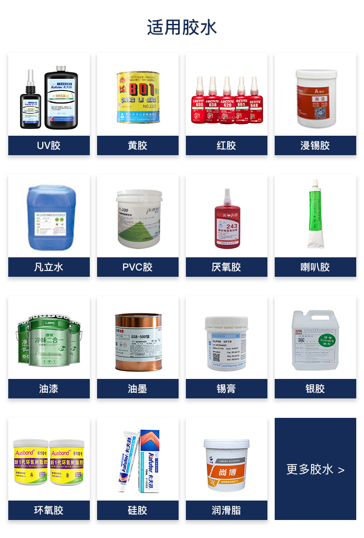自動(dòng)點(diǎn)膠機(jī)應(yīng)用領(lǐng)域:基本涉及到有粘度的流體都可用點(diǎn)膠機(jī)。如(UV膠、AB膠、瞬間膠、白膠、環(huán)氧樹脂、螺紋鎖固劑、平面密封膠等)