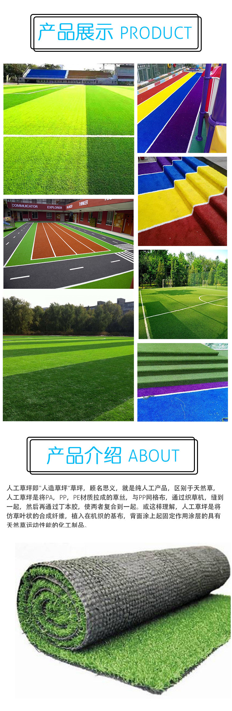 人工草坪即“人造草坪”草坪,顧名思義,就是純?nèi)斯ぎa(chǎn)品,區(qū)別于天然草,人工草坪是將PA,PP,PE材質(zhì)拉成的草絲,與PP網(wǎng)格布,通過織草機,縫到一起,然后再通過丁本膠,使兩者復(fù)合到一起。或這樣理解,人工草坪是將仿草葉狀的合成纖維,植入在機織的基布,背面涂上起固定作用涂層的具有天然草運動性能的化工制品。
