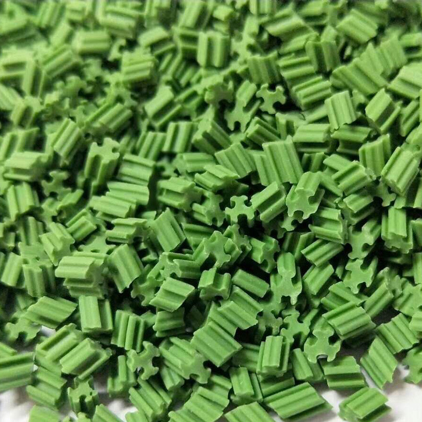 EDPM 環(huán)保顆粒,硫化物,屬于熱固性彈性體,同樣具有環(huán)保性能,在生產(chǎn)中采用傳統(tǒng)橡膠硫化工藝,中間需要添加硫化劑,促進(jìn)劑,催化劑等硫化加工助劑,這些硫化加工助劑存在環(huán)保風(fēng)險。另外,EDPM 顆粒堆積密度無法達(dá)到 TPE 顆粒的效果,氣味也大于 TPE 顆粒。TPE 顆粒具有更多可選擇的造型外觀,其堆積密度和使用效果各不一樣,選擇更多元化。