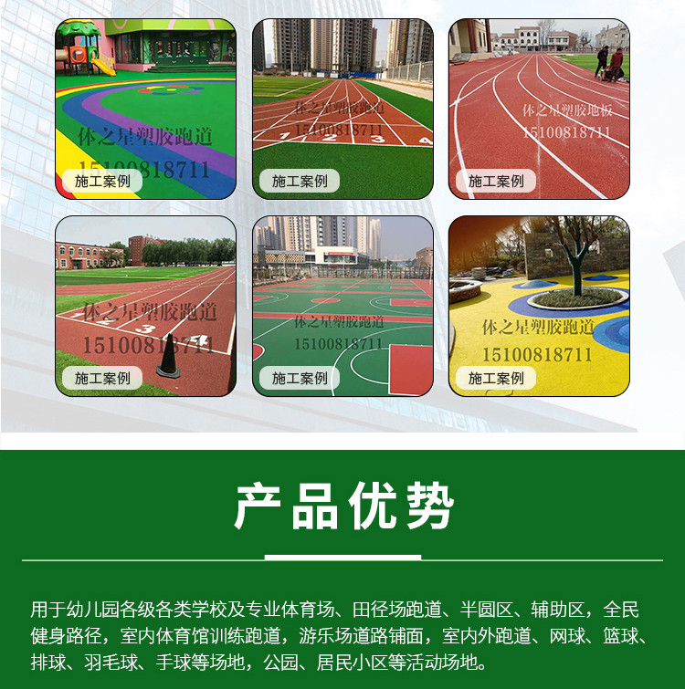 主營透氣型跑道材料、混合型跑道材料、三元乙丙橡膠顆粒材料、硅PU球場材料、PU塑膠材料、預(yù)制型卷材、人造草坪TPE顆粒等