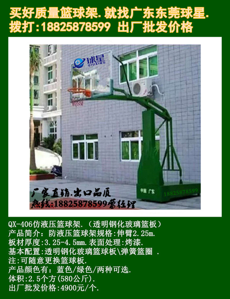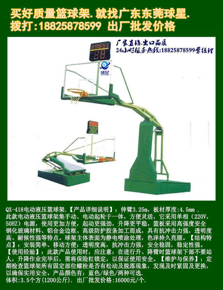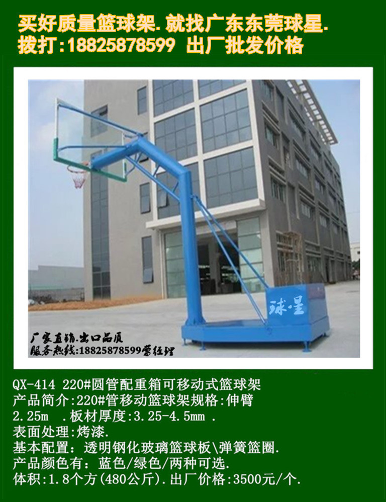籃球架系列產(chǎn)品顏色為:綠色、藍(lán)色、可選.可根據(jù)用戶(hù)需求改變顏色,產(chǎn)品在沒(méi)有特別說(shuō)明的前提下默認(rèn)為根據(jù)庫(kù)存隨機(jī)從綠、藍(lán)兩種顏色中隨機(jī)抽取發(fā)貨。