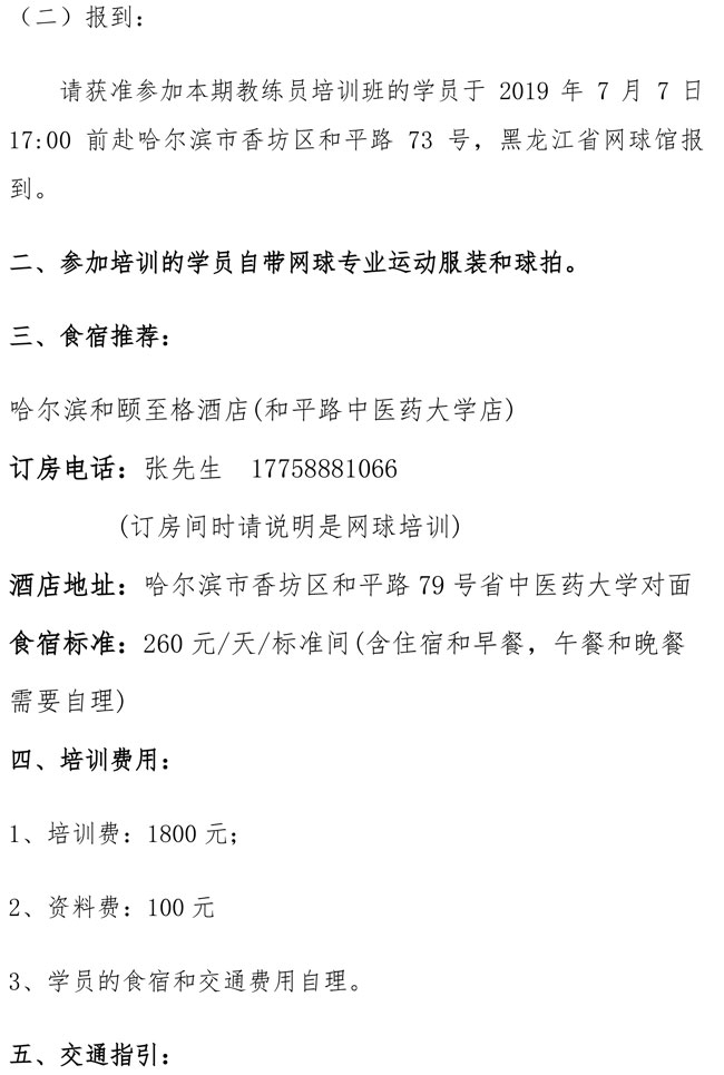 中國網(wǎng)球協(xié)會2019年初級教練員培訓(xùn)班(哈爾濱站)補(bǔ)充通知