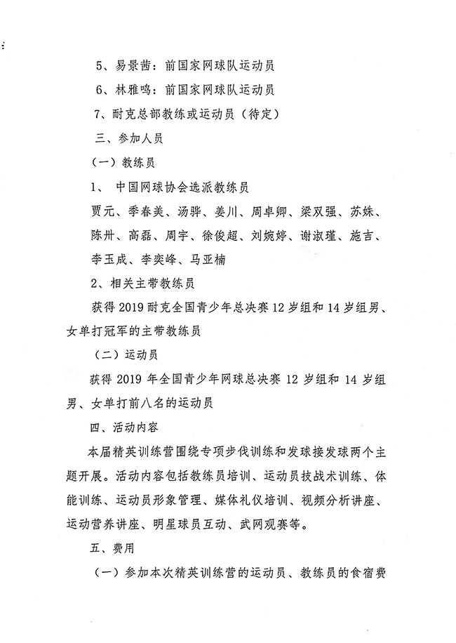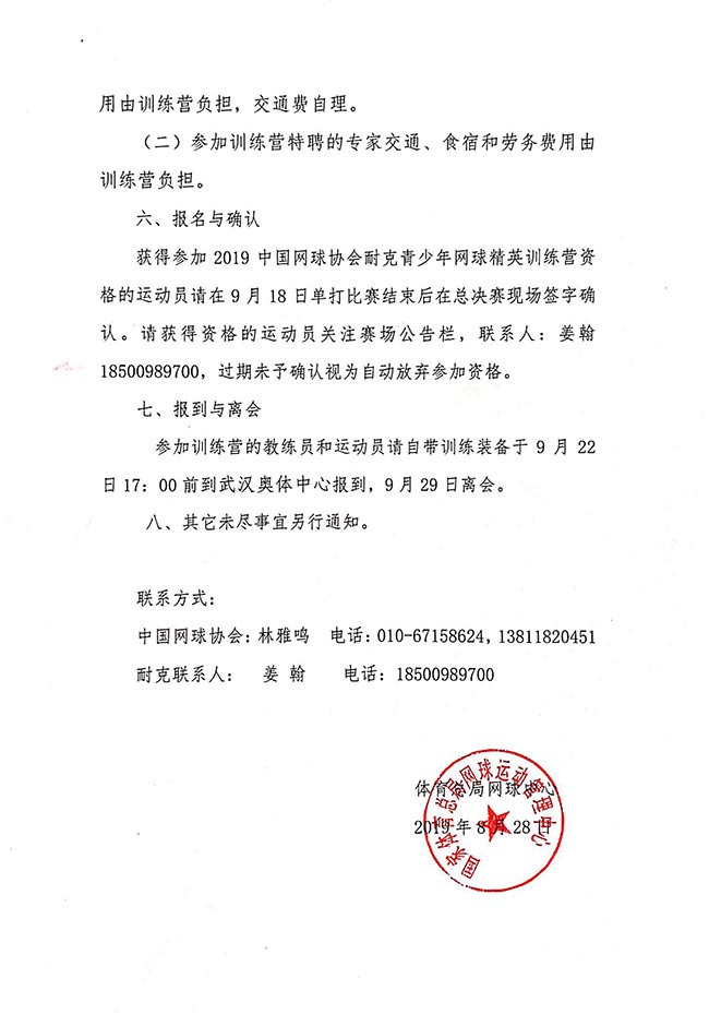 體育總局網(wǎng)球中心關(guān)于舉辦2019中國網(wǎng)球協(xié)會耐克青少年網(wǎng)球精英訓練營的通知