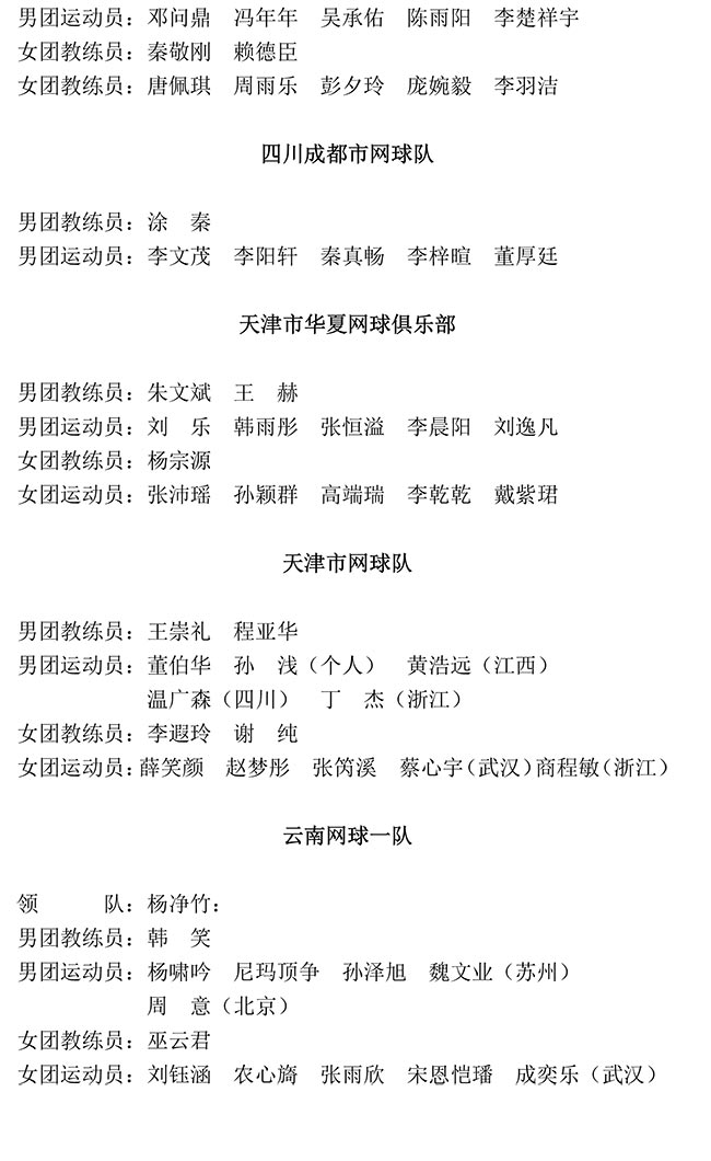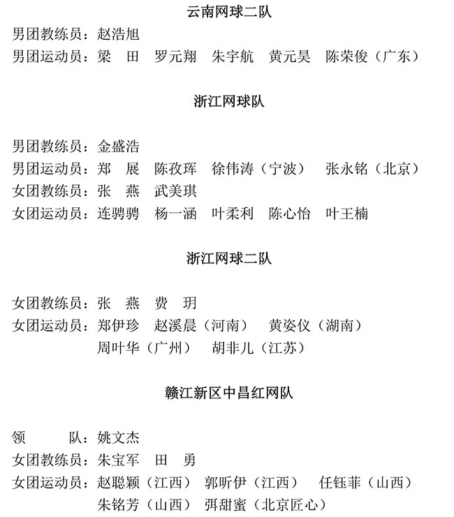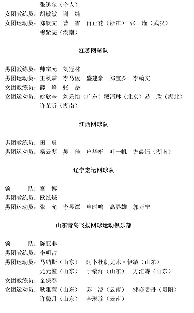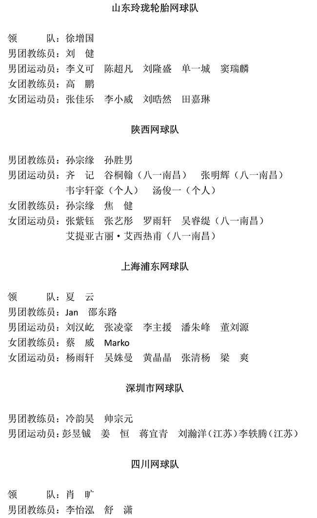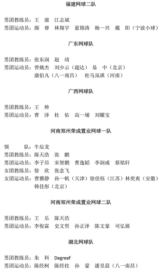 2019年全國網(wǎng)球青年團(tuán)體錦標(biāo)賽報名匯總