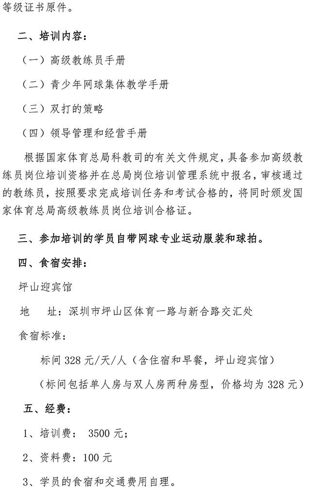 中國(guó)網(wǎng)球協(xié)會(huì)2019年高級(jí)教練員培訓(xùn)班(深圳站)補(bǔ)充通知