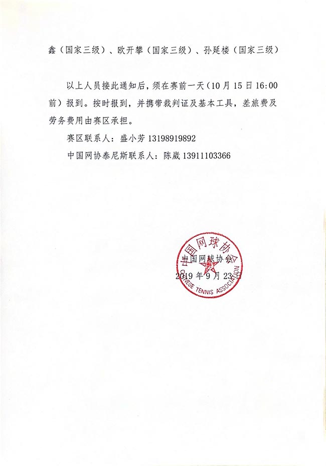關(guān)于選派2019年中國(guó)業(yè)余網(wǎng)球公開賽??阢@石賽技術(shù)官員的通知