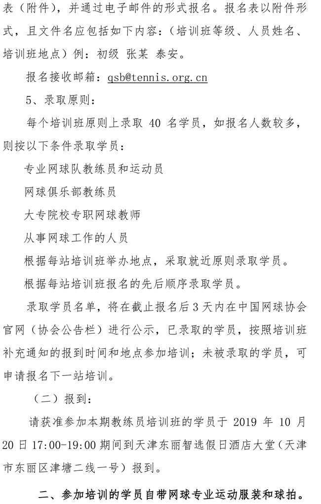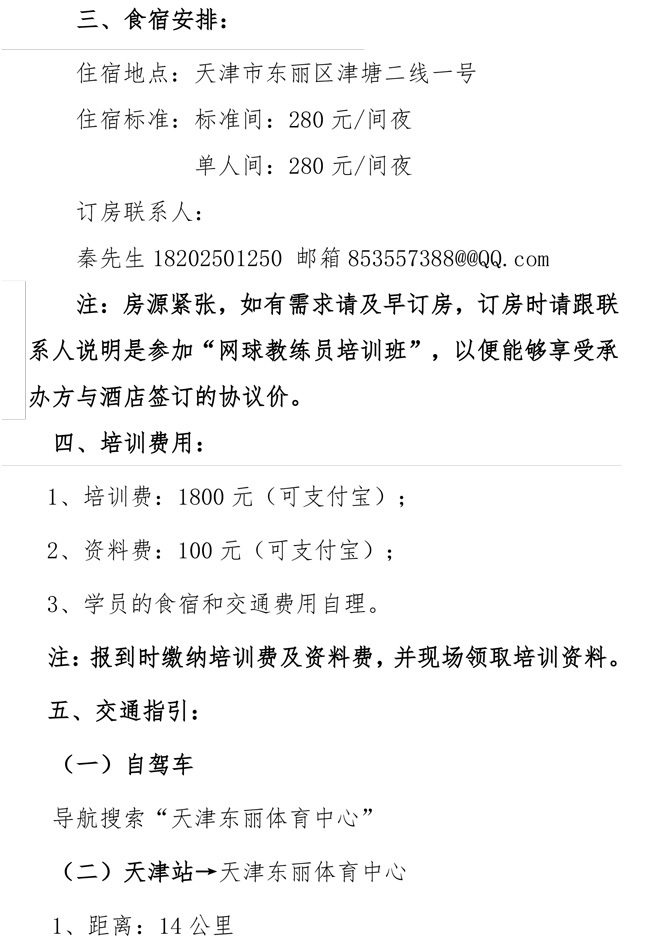 中國網(wǎng)球協(xié)會2019年初級教練員培訓(xùn)班(天津站)補充通知