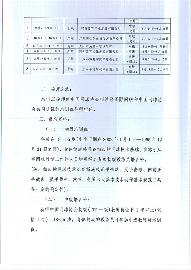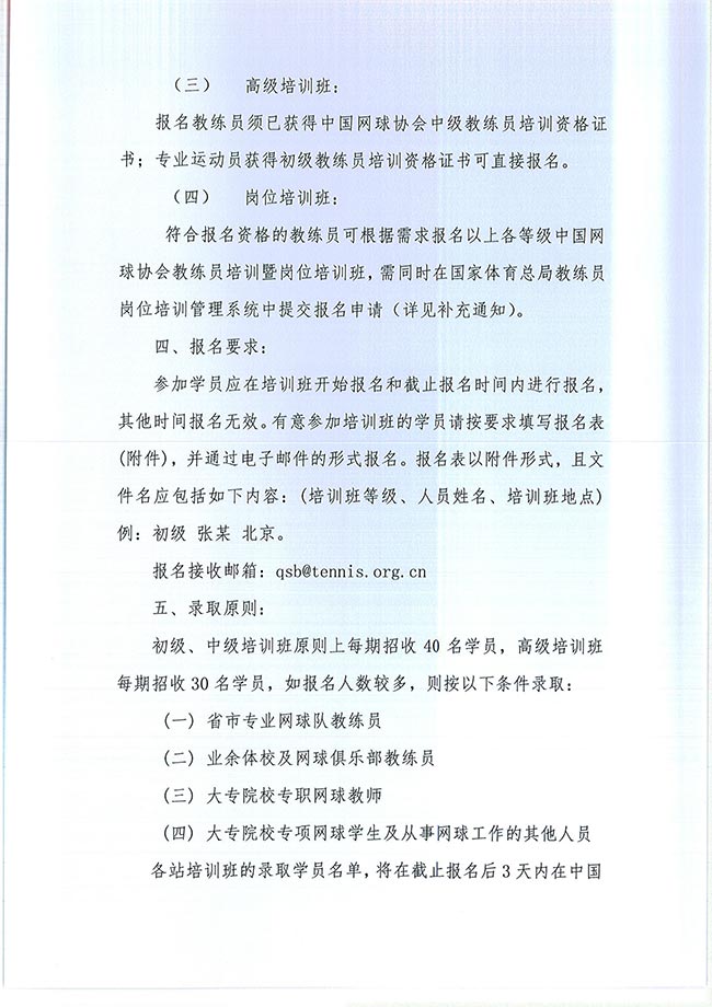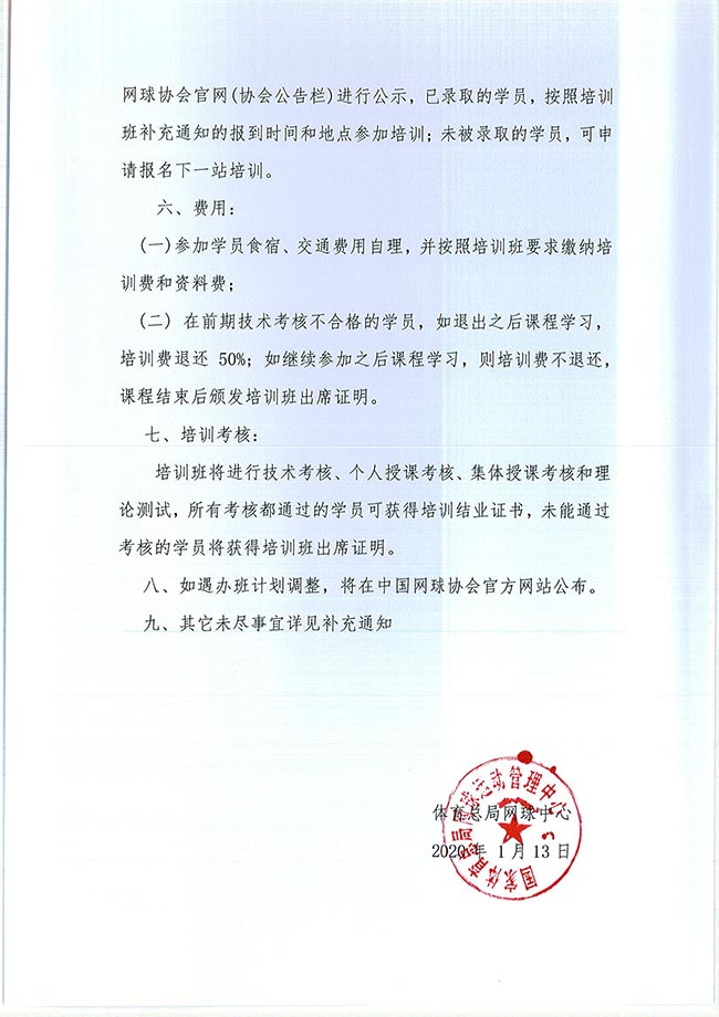 關(guān)于舉辦2020年中國(guó)網(wǎng)球協(xié)會(huì)等級(jí)教練員培訓(xùn)班的通知