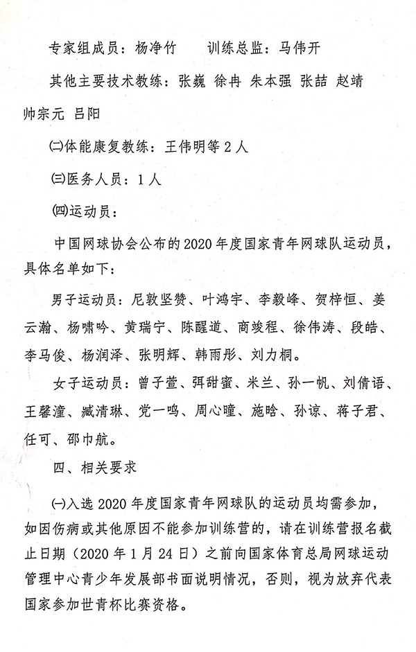 關(guān)于舉辦國(guó)家青年隊(duì)訓(xùn)練營(yíng)的通知