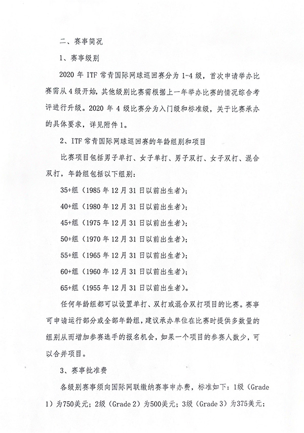 關(guān)于公開征集2020年ITF常青國際網(wǎng)球巡回賽(國際網(wǎng)聯(lián)元老賽)承辦單位的通知