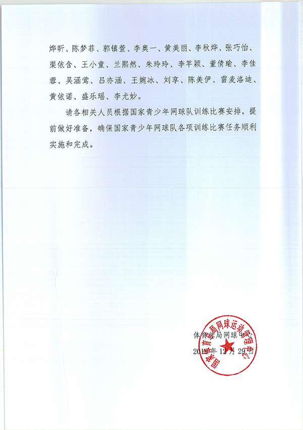 關(guān)于公布2020年國家青少年網(wǎng)球隊(duì)相關(guān)人員組成名單的通知