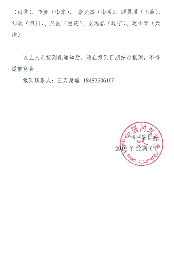 關(guān)于參加首屆中國網(wǎng)球巡回賽賽事監(jiān)督培訓班的補充通知