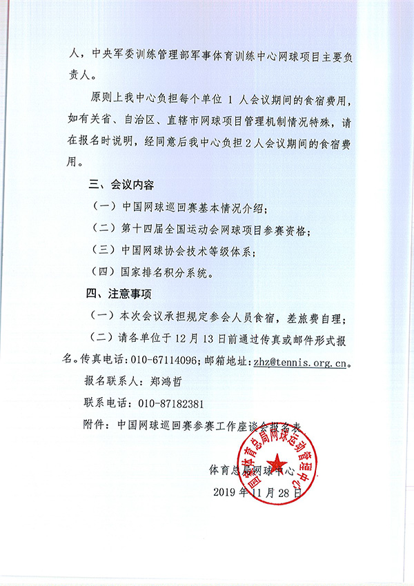 關(guān)于召開中國網(wǎng)球巡回賽參賽工作座談會的通知