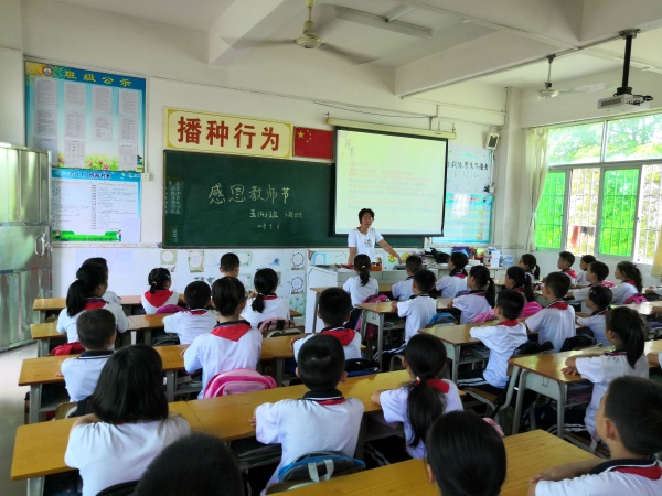 活動(dòng)二:9月9日,南朗旗風(fēng)學(xué)校開展“感恩教師節(jié)”為主題的班會(huì)課活動(dòng),班主任不僅帶領(lǐng)學(xué)生學(xué)習(xí)教師節(jié)的由來,還通過講解教師的多重身份,如“警察”、“主持人”、“演員”等不同角色,讓學(xué)生理解教師的艱辛、不易;列舉了部分從古今感人的教師事跡,讓學(xué)生感受教師的偉大、無私。最后,讓學(xué)生聆聽一首《每當(dāng)我走過老師窗前》,向教師表達(dá)自己的祝福,不少學(xué)生聽著聽著,不由自主地跟著唱起來了,學(xué)生動(dòng)聽的歌聲中,傳送的是他們對教師最真摯的祝福。
