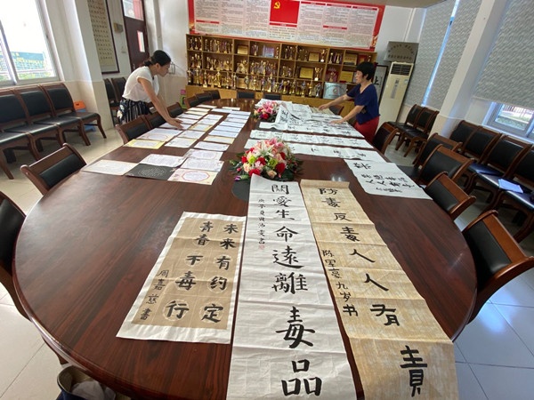 6月20日,全校開展了“無毒青春 健康生活”為主題的書法比賽活動。一到六年級每班三位學生參加,在規(guī)定時間內(nèi)書寫禁毒詩一首。比賽現(xiàn)場選手們一個個凝神靜氣,將注意力都集中在筆尖,在專注每一筆畫的同時關(guān)注整首詩的結(jié)構(gòu)和諧。此次書法比賽,以傳統(tǒng)書法為載體,廣泛宣傳禁毒知識,讓他們在創(chuàng)作和欣賞藝術(shù)作品的同時,提高識毒、防毒、拒毒的能力,為深入推進6·26毒品預(yù)防教育營造良好氛圍。