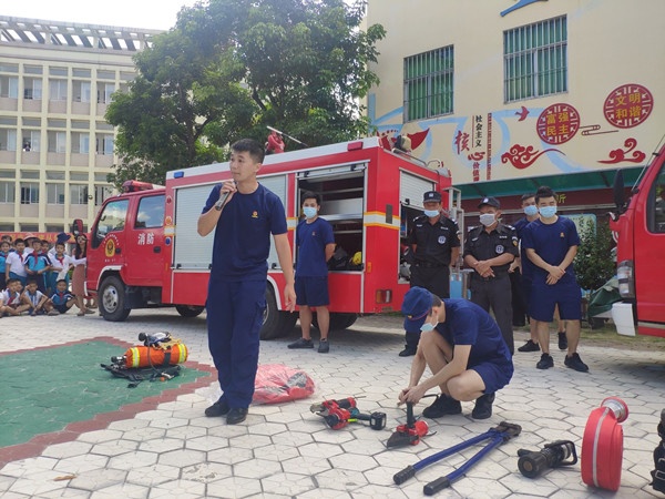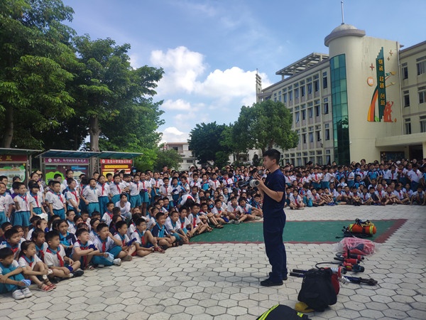 緊接著,南區(qū)消防中隊(duì)的消防員在教學(xué)樓前的小廣場上向師生介紹了一系列的消防裝備,如氧氣筒、消防防護(hù)服、液壓剪、擴(kuò)張器、絕緣剪、多功能水槍、滅火服、手動(dòng)破拆工具組等。消防員還親身示范這些裝備的使用方法,部分學(xué)生代表學(xué)習(xí)了消防裝備的使用方法,學(xué)生們在體驗(yàn)中增長了消防知識(shí)及技巧,強(qiáng)化了安全意識(shí)。
